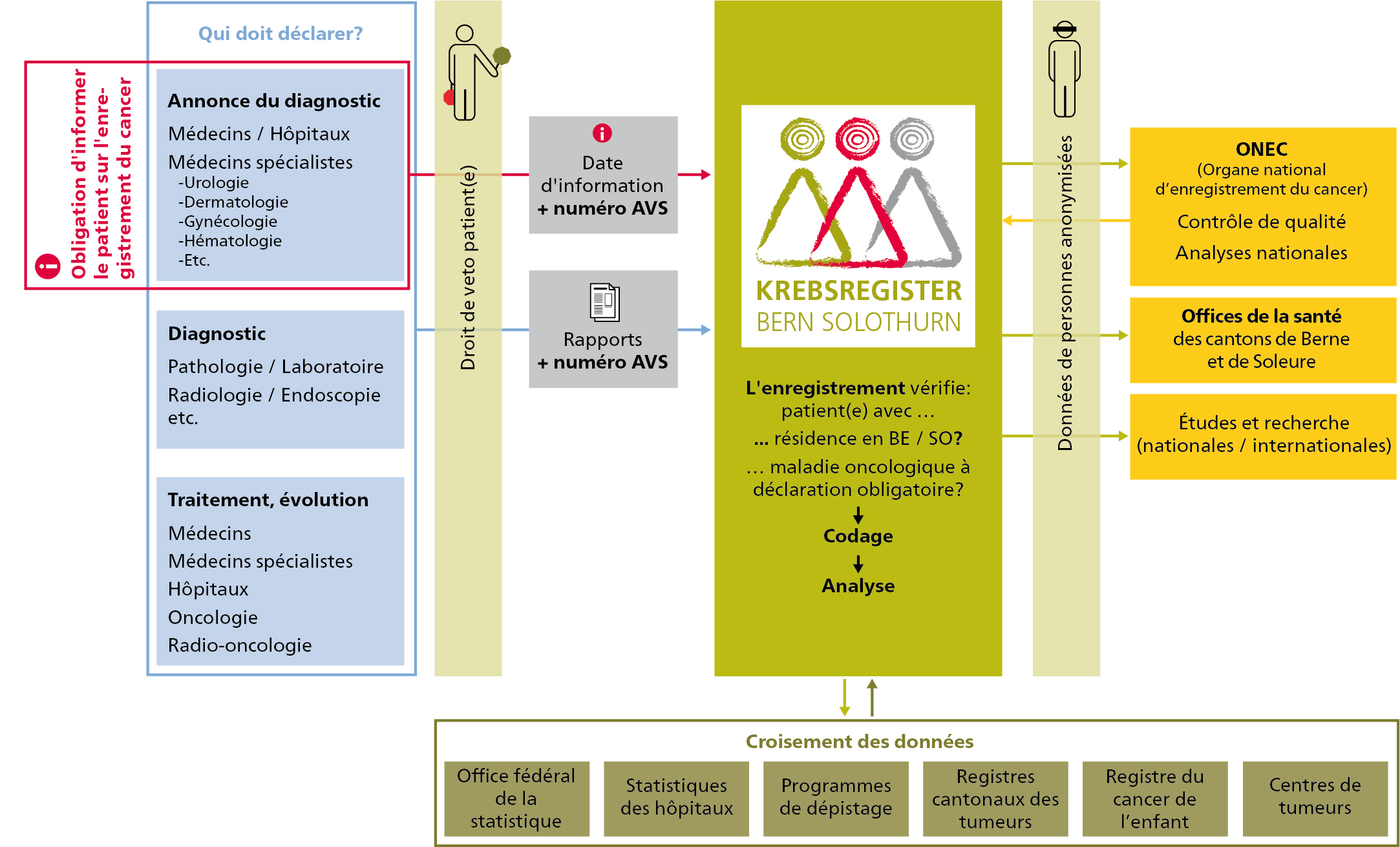 Le patient doit savoir que ses données seront envoyées au registre des tumeurs compétent. Il doit être informé du but de l'enregistrement du cancer et de son droit d'opposition.